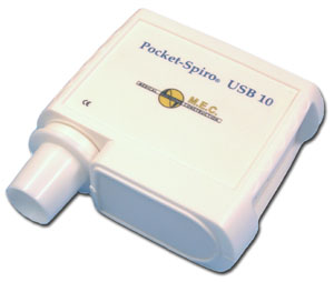 The interrupter technique, the simplest method for measuring airflow resistance (Rint or Rocc) is particularly valuable under field conditions. The Rocc option is compatible with all the MEC Pocket-Spiro® products (except Pocket Spiro USB10). This mean that you can use the Rocc option with your Pocket-Spiro® USB100 (with a USB cable ) or BT100 (Bluetooth wireless).